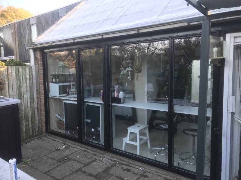 Vervangen kozijn met tuindeuren voor kozijn met schuifpui van 4,30 m lang